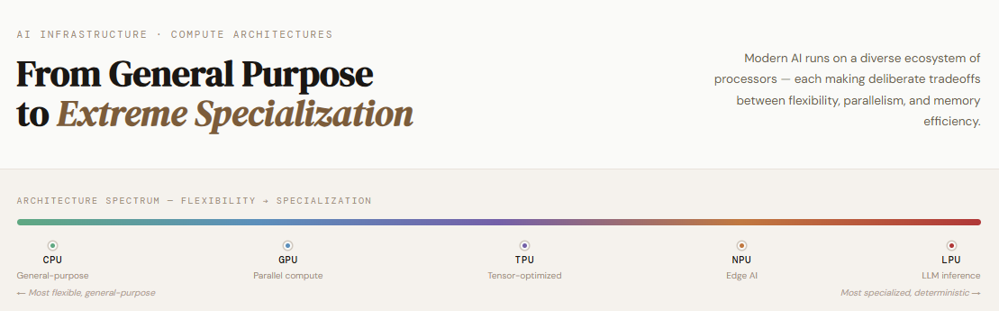 Emerging innovations like Groq’s LPU further push the boundaries, delivering significantly faster and more energy-efficient inference for large language models. As enterprises shift from general-purpose computing to workload-specific optimization, understanding these architectures has become essential for every AI engineer.